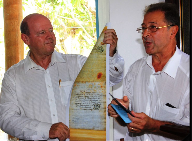 A noter qu’en en 2012, M. Touboul avait déjà remis un document essentiel de la période française aux Seychelles : ‘le Traité de Paris du 30 mai 1814’, traité qui fut par la suite ratifié par le Congrès de Vienne de 1815 et qui par son article 8, la France céda en toute propriété à la Couronne britannique l’Isle de France et certaines de ses dépendances dont Rodrigues et les Seychelles, mettant fin ainsi à 73 années de présence française aux Seychelles de 1742 à 1815.