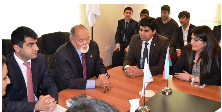 These were the concluding words of Seychelles founding President James R. Mancham as he addressed members of the Youth Club of Azerbaijan Ruling Party – The New Azerbaijan Party (NAP) –on the theme ‘The World Today and Tomorrow’ at the headquarters of the Party in the capital city of Baku.