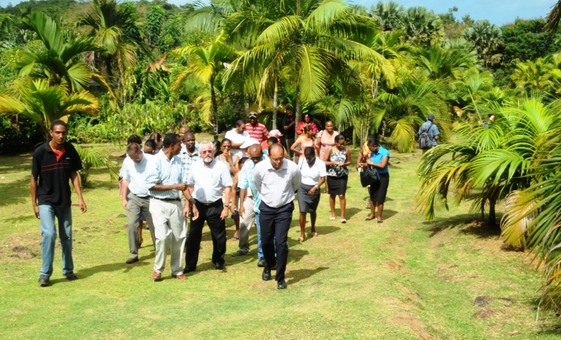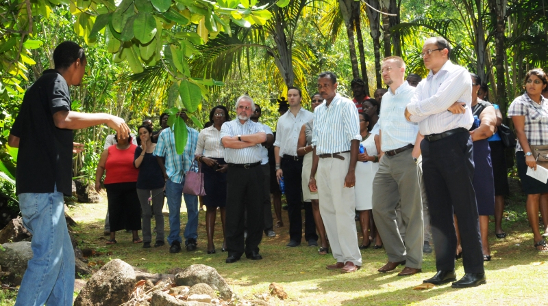 After almost two hours of walking the trail, the guests were taken through the palm garden, Aldabra garden to see several endemic plants among which are bwa kafoul, bwa dir blan, kafe maron ti fey, bilenbi maron.