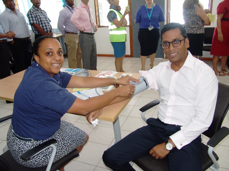 The ‘Commit to be fit’ campaign was launched at the airline’s headquarters at Pointe Larue, where staff received a health check from the Ministry of Health and had their baseline weight, Body Mass Index, blood sugar and blood pressure levels recorded.