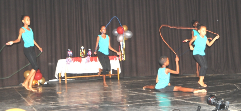 Baie Ste Anne Praslin, Port Glaud, La Retraite and Bel Eau primary schools also took part in the competition held at the National Theatre, Mont Fleuri, where children demonstrated various ways of doing exercise with the use of hoops, skipping ropes and music.