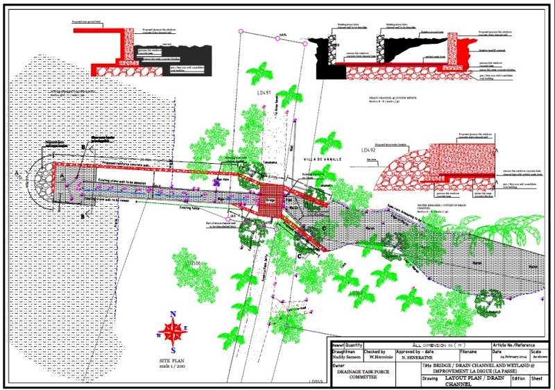 Ground works for the collection of data, for the design of the outlets and drains started in the month of March 2014 and due to the complexity of the design for the two main bridges at La Pass and L’union Estate, delays were encountered in the design phase of the project. Further to that, delays were encountered in getting the inhabitants to sign the leeways that were important for the implementation of the project as the location of the bridge crosses private properties and this is also the case for the project to de-silt and re-construction on bridges on “Lanmare Soupap” of which the marsh channel also crosses private properties.
