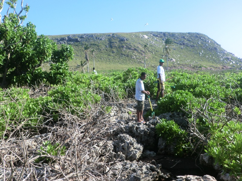 There were concerns that the decline in vegetation will also result in mass desertion of tree nesting seabird species. We therefore proposed to rehabilitate the island’s plateau area to increase and sustain a long-term vegetation structure suitable for providing nesting sites and materials to the seabird populations. The intentions were to plant as many seedlings as possible on the plateau area where soil composition and dept would allow growth and maintenance of woodlands. Plants were chosen according to their ability to withstand high level of salinity and those that grow well in coastal sand. The department planted over 200 plants during 2012 with funding from the Environment Trust Fund under the government of Seychelles.