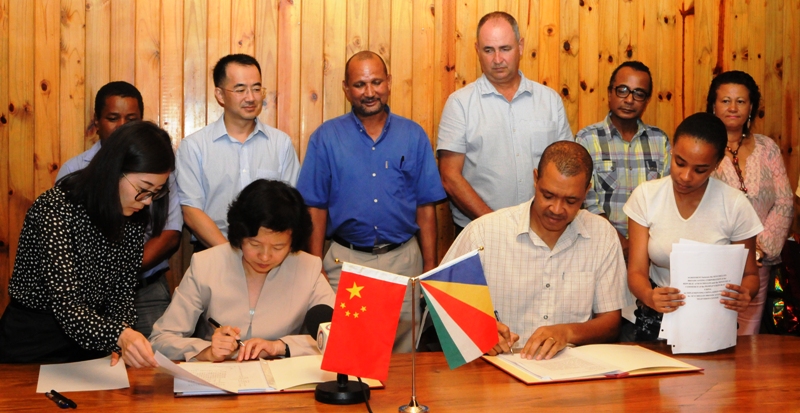 The agreement was signed on Monday at the Seychelles Broadcasting Corporation (SBC) headquarters at Hermitage by the broadcasting house’s newly appointed chief executive Bérard Duprès and Ai Yinyang, a representative from the Agency for International Economic Cooperation from China's Ministry of Commerce.