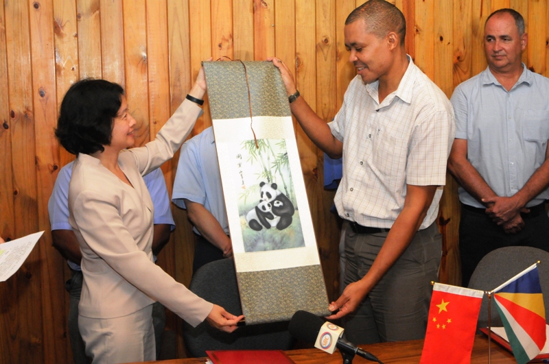 The ceremony concluded with an exchange of gifts and tokens from both sides, the particular standout being a scroll painting of a Panda from the Chinese government to SBC. This represents a symbol of peace and friendship between Seychelles and China.