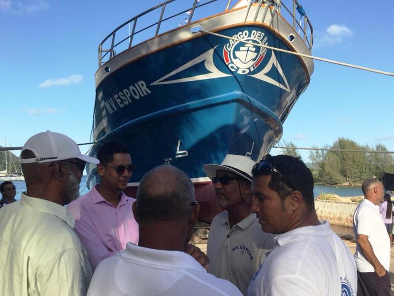 A new boat to transport cargo between Mahé, Praslin and La Digue, MV Espoir was launched early Sunday morning on Praslin.