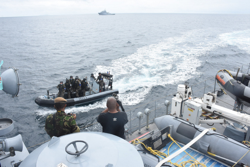 The four days of boarding, searching, seizure, fire fighting and firing execution exercises, which ends tomorrow, started early on Monday this week off the northern coast of Mahé to finish 10,000 nautical miles off the northwest coast of the island of Silhouette.