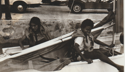She added that when six Mirror dinghy kits arrived by sea, the instructors built the fleet. Sections of 9mm marine plywood were joined with copper wire to make the hull and the seams were sealed with fibreglass. At first only hand tools were available. Some people like Eston Dubel came to help build the dinghies after school, others like Alex Auguste, came to help teach others. Boat launching ceremonies were joyful occasions, for each new Mirror with its red sail meant that more people could have lessons each week. Before that SYC members gave the volunteers permission to use their 14-foot dinghies for teaching.