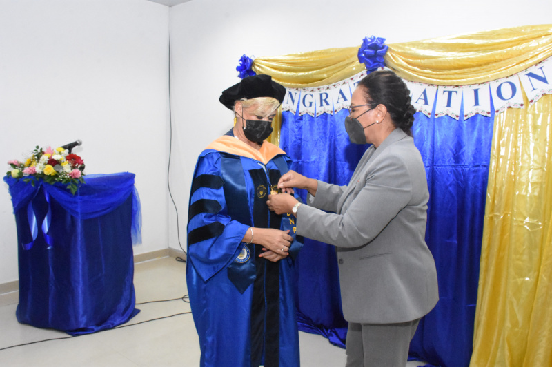 On Saturday afternoon, it was a special moment for Gylian Mein. She was honoured by the Minister for Health Peggy Vidot, her family and her colleagues with a symbolic hand over of a doctoral degree in nursing practice.