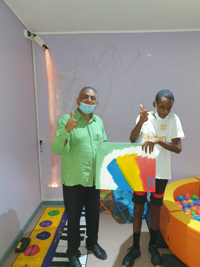 A number of viewers of the exhibition have expressed their views and bought Patrick’s paintings for their own private collection and satisfaction. One promoter, collector and supporter of local art is Gafoor Yakub, chairman & chief executive of paint manufacturing company Penlac. He has decided to buy a few of Patrick’s paintings and donated them to the Autism Support Centre at North East Point at a small informal ceremony on Saturday November 20 in the presence of some committee members, namely Lyne Lavigne (deputy Chair), Marie-Annette Ernesta, Myrna Hoareau Michel.