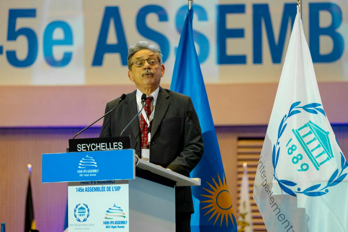 Speaker Roger Mancienne addressed the IPU Assembly following his meeting with President Pacheco on the theme of the debate ‘Gender equality and gender sensitive parliaments as drivers for a more resilient and peaceful world’.