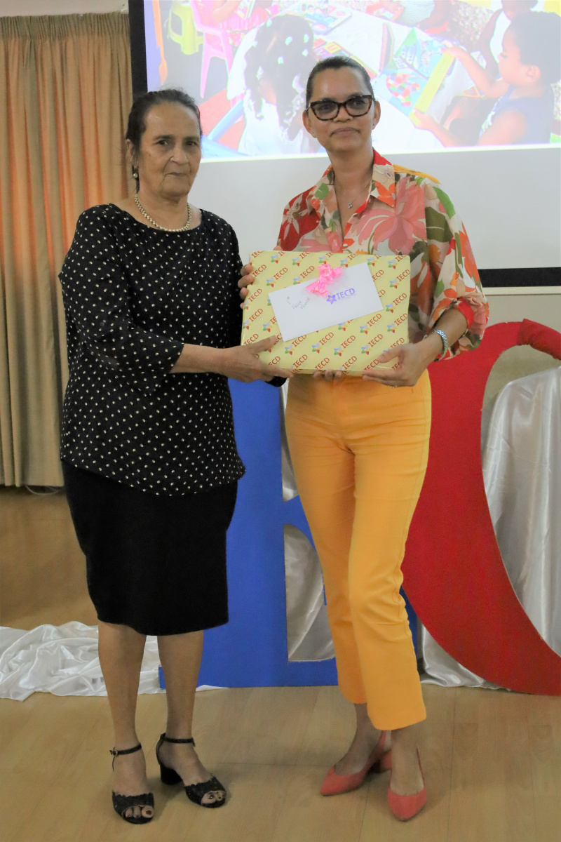 Cyril Pillay, a member of the Trust Fund, made a symbolic presentation to three childminders on behalf of all childminders registered with IECD.