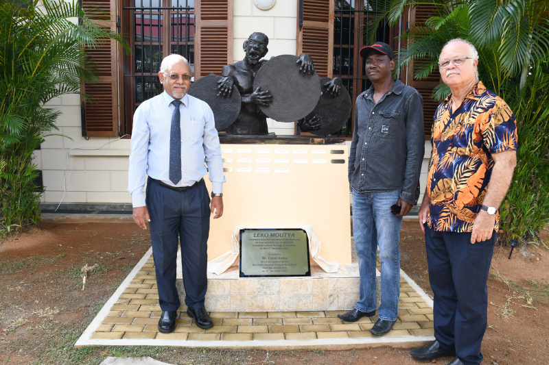 The statue, dubbed ‘Leko Moutya’, depicts a male person singing while beating a ‘moutya’ drum and flanked by two other ‘moutya’ drums.