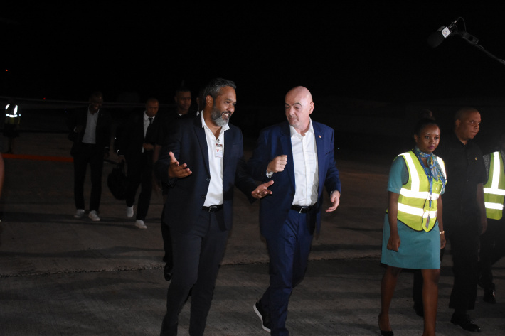 For his first-time visit, Mr Infantino was met at the airport by the president of the Seychelles Football Federation (SFF) Elvis Chetty, while the visit will be highlighted by a call on President Wavel Ramkalawan at State House this morning in the presence of the Minister for Youth, Sports and Family, Marie-Celine Zialor, and other football officials.