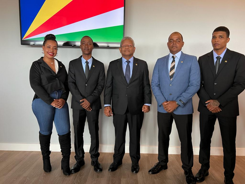 Upon his arrival in the UK, the President also paid a visit to the high commission of the Republic of Seychelles in London where he held discussions with Patsy Moustache, the acting high commissioner (principal counsellor) along with Fanchette Powell, office manager.