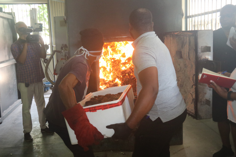 Police sub-inspector Jimroy Jeannevol said they have to make sure that every exhibit is completely burnt before saying they have successfully disposed of the meat.