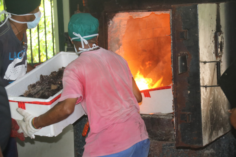 The content of the 19 gunny bags were then transferred into 19 boxes and sent to the incinerator.