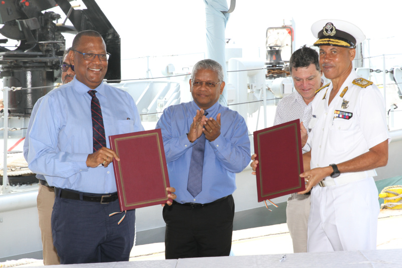 It was the Minister for Transport, Anthony Derjacques, who signed and handed over the official documents to the chief of defence forces, Brigadier Michael Rosette, who signed on behalf of the coast guard.