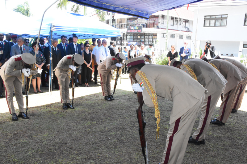 President Ramkalawan lays his wreath at the foot of the cenotaph