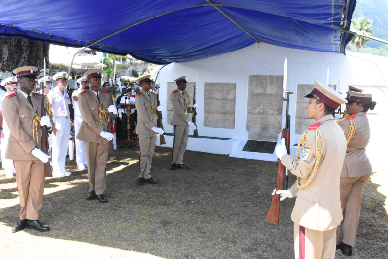 On Sunday, November 12, the second Sunday of November nearest to the Armistice day, the customary religious service was held at the cenotaph, in the Mont Fleuri cemetery, where the names of all Seychellois soldiers and other personnel who lost their lives during the two world wars and other military conflicts are engraved.