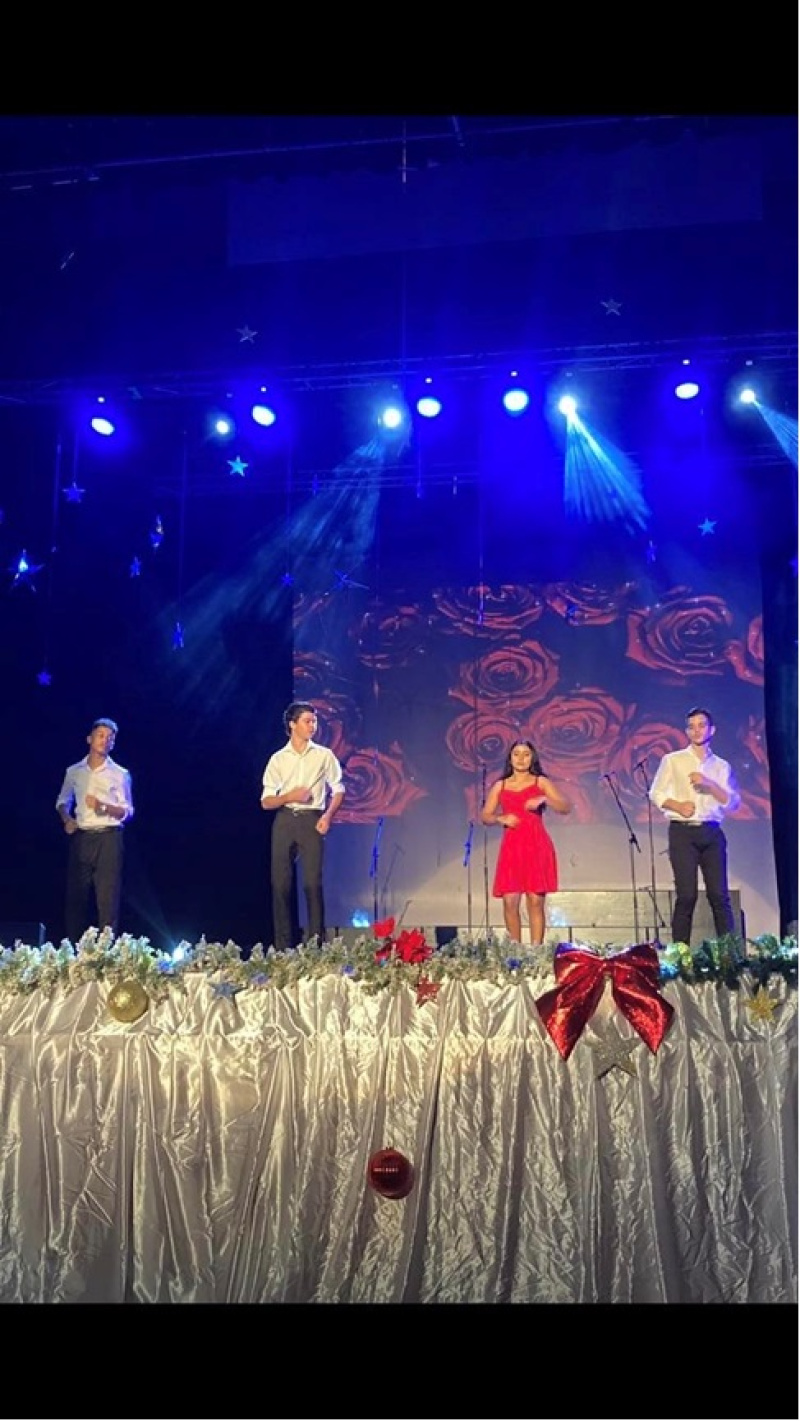 The school's stage transformed into a magical spectacle resembling the iconic Clock Tower in Victoria, adorning the atmosphere with a sense of community and togetherness. The festive decorations created a picturesque setting that added to the joyous holiday spirit.