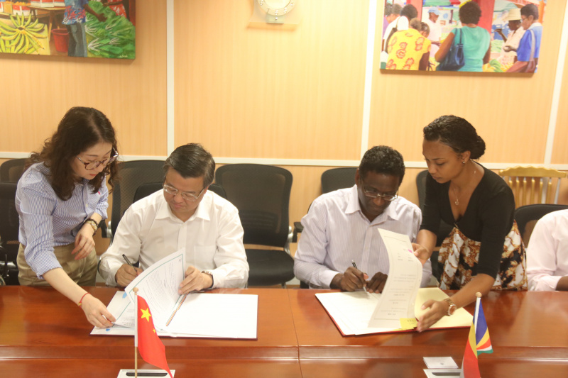 The signing of the three MoUs was also attended by the Ambassador of the People’s Republic of China to Seychelles Guo Wei, Lindy Ernesta of the department of foreign affairs, members of the Chinese delegation and representatives of the Ministry of Finance, Trade, Investment and Economic Planning.