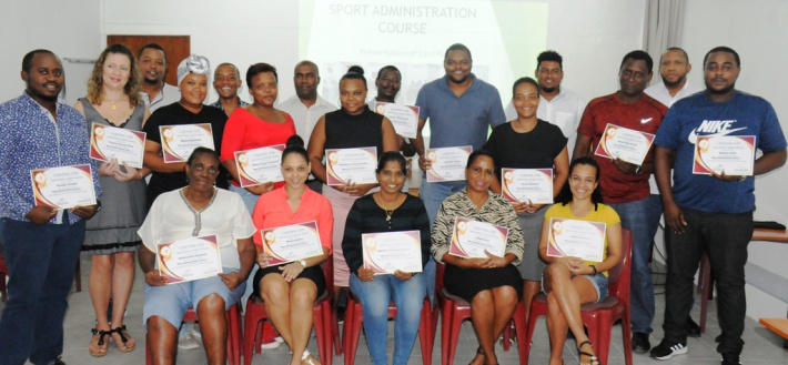 The course delegates received their certificate from Mr Servina and secretary general of the Seychelles Olympic and Commonwealth Games Association (Socga) Alain Alcindor who was representing the chief executive of the NSC Jean Larue.