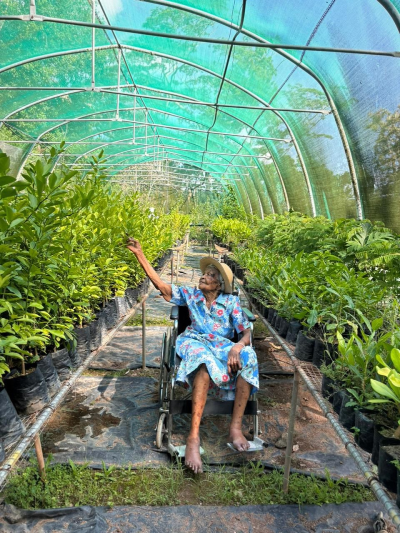 Sete enn bann santener, Madanm Evangeline Joubert, aze 103-an, ki’n vizit sa landrwa merveye sitie lo Praslin.
