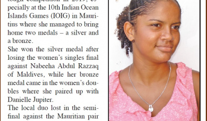 Locally, she performed at the annual Seychelles-India Tournament where she won the women’s singles and doubles, while finishing as runners-up in the mixed doubles event.