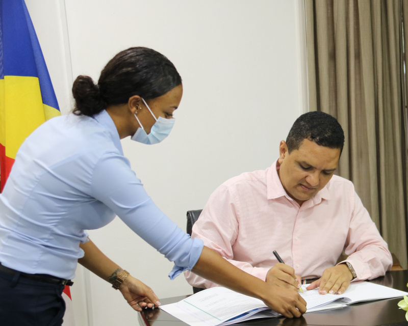 The agreement was signed by the principal secretary for the Blue Economy, Kenneth Racombo on behalf of Seychelles and Oliver Oram, chief executive of Chainvine.