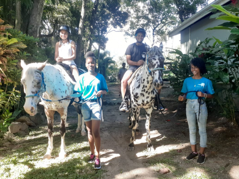 The students – Lyandra Bastienne from Plaisance secondary and Sajah Leon from Mont Fleuri secondary –kicked off their day with a safety briefing followed by basic handling training in which they had to learn how to manoeuvre the horses comfortably throughout the guided tours.