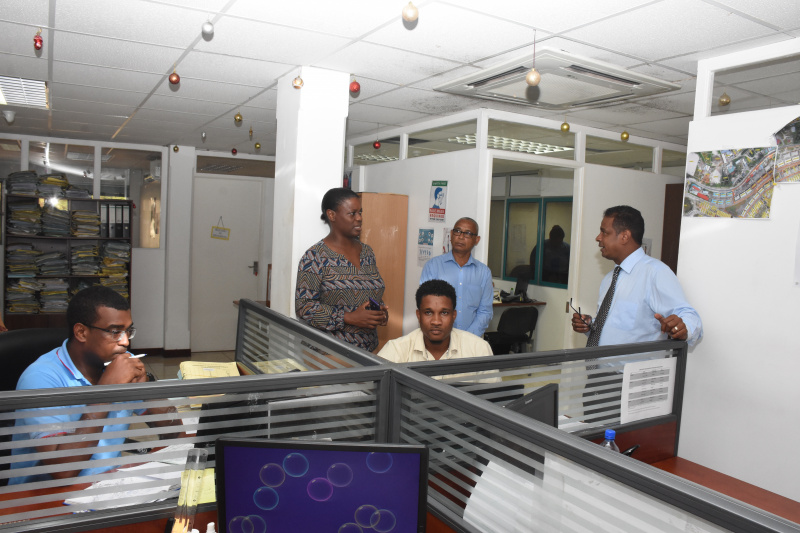 Minister Rangasamy was led on a tour of the different sections of PMC on the ground and first floors of Oceangate House and Oceangate House Annex by PMC chief executive Evelina Antha. He was accompanied by the principal secretary for housing Denis Barbé and his special advisor Gerard Hoareau.