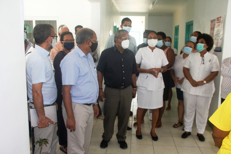 The visit started off in the district of Baie Ste Anne, precisely at the jetty, then moved to a non-functioning abattoir which is under repair, the new jetty, the cargo port, the fire station, an industrial land project for potential land redistribution at Ile Eve, the Public Utilities Corporation (PUC) facility, the police station, the Baie Ste Anne Hospital, including a short visit at the Vallée De Mai and to a hot spot at Côte d’Or.