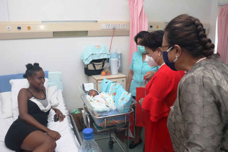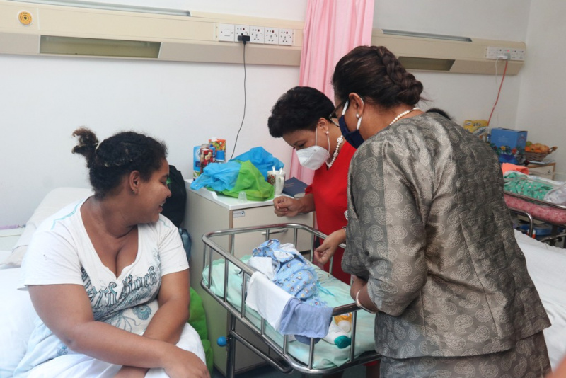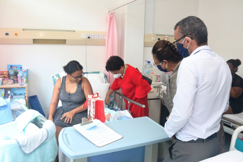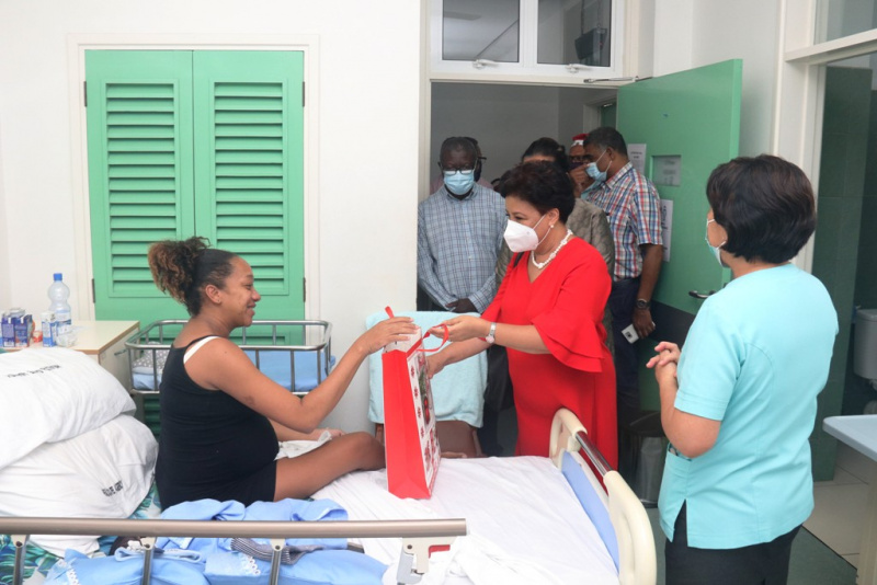 The visit started at the maternity and pediatric wards where Mrs Ramkalawan got a chance to be Saint Nick for a day and handed out gifts to the newborn babies and children present.