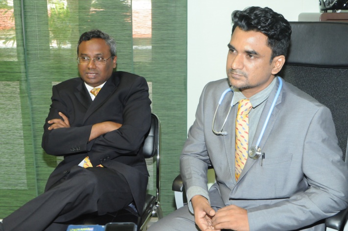 The two oncologists talking to the press yesterday about the cancer screening camp