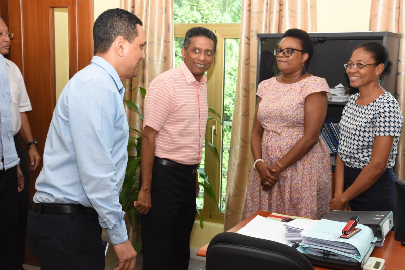 President Faure toured the premises and interacted with the 15 employees within the department before a meeting with the PS and officials in which he urged them to improve sensitisation and education of the Blue economy concept at national level.
