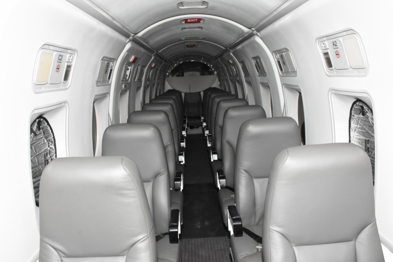 The Beechcraft 1900D is a pressurised twin-engine turboprop fixed aircraft and has the capacity to carry 19 passengers and cargo. It is certified to fly up to an altitude of 25,000 feet (7,600m) above sea level and is designed to carry passengers in all weather conditions from airports to short runways. It also has the capability to fly regionally.