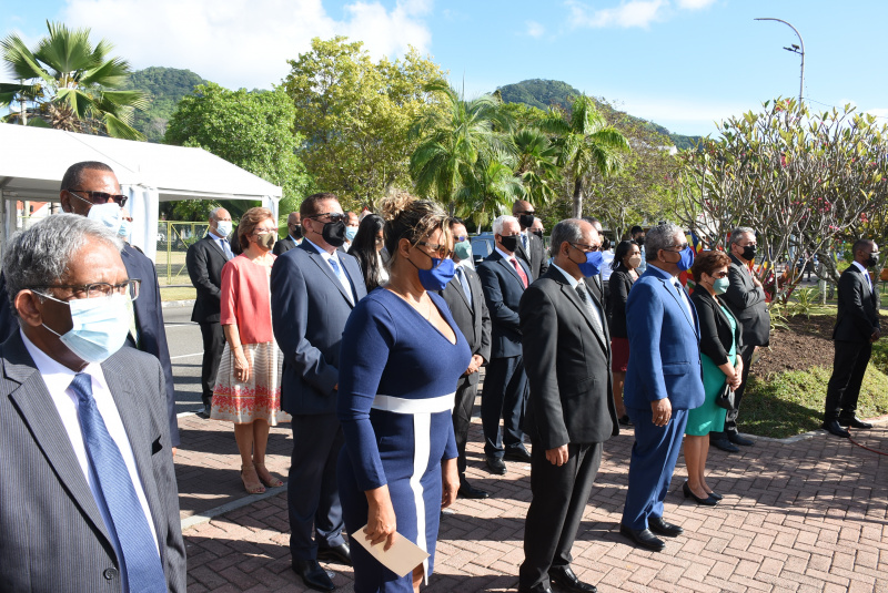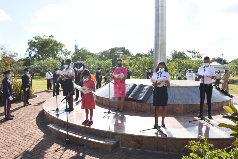 After the National Anthem was performed and the flag hoisted, Hailey Agathine (a primary student), Leonora Hoareau (a secondary student), Georgia Ernesta (an A-Level student), Bertrand Loze (a UniSey student), Julien Alexis (a young professional) and Josianne Azemia-Seeward read out the preamble of the Constitution.