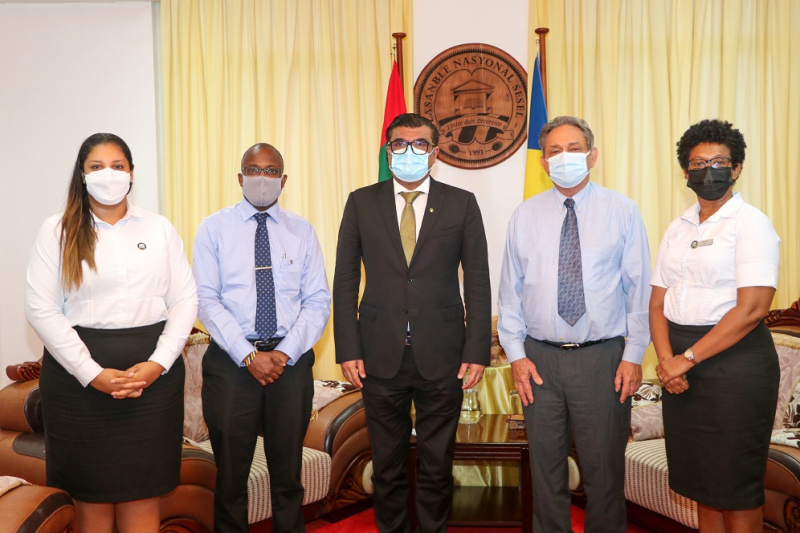 Also present to welcome the first HC Extraordinary and Plenipotentiary of the Republic of Maldives to Seychelles were deputy Speaker Hon. Gervais Henrie, the Clerk of the Assembly Tania Isaac and the deputy Clerk Alexandria Faure.